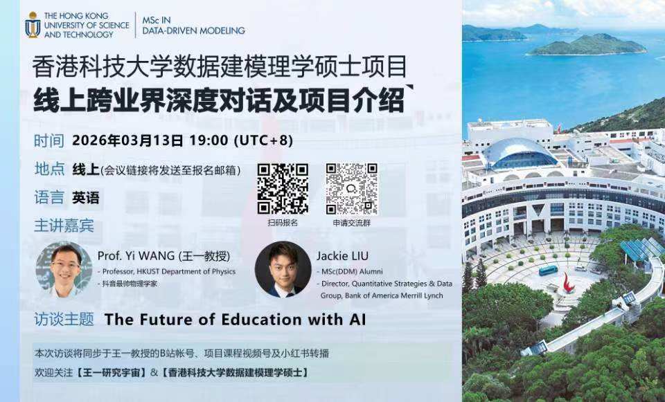 🌟活动预告 | 学术顶流×跨界精英:探秘AI+数据如何重塑世界 ——香港科技大学数据建模理学硕士项目线上跨业界深度对话 (暨DDM项目介绍)